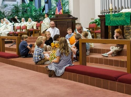 All of us start Worship together and after the Children's Sermon they will be led across the campus for group activities.